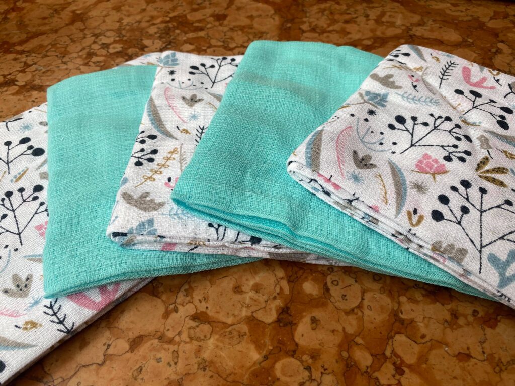 Farbige Noschis von Babymajawelt, 70x80cm, 5er Pack. Sicher und hautfreundlich, schadstofffrei, Allergiker geeignet Ideal als Noschi, Spucktuch oder Sabberlatz. Saugfähig und langlebig, Noschis aus reiner Baumwolle 115g/m².